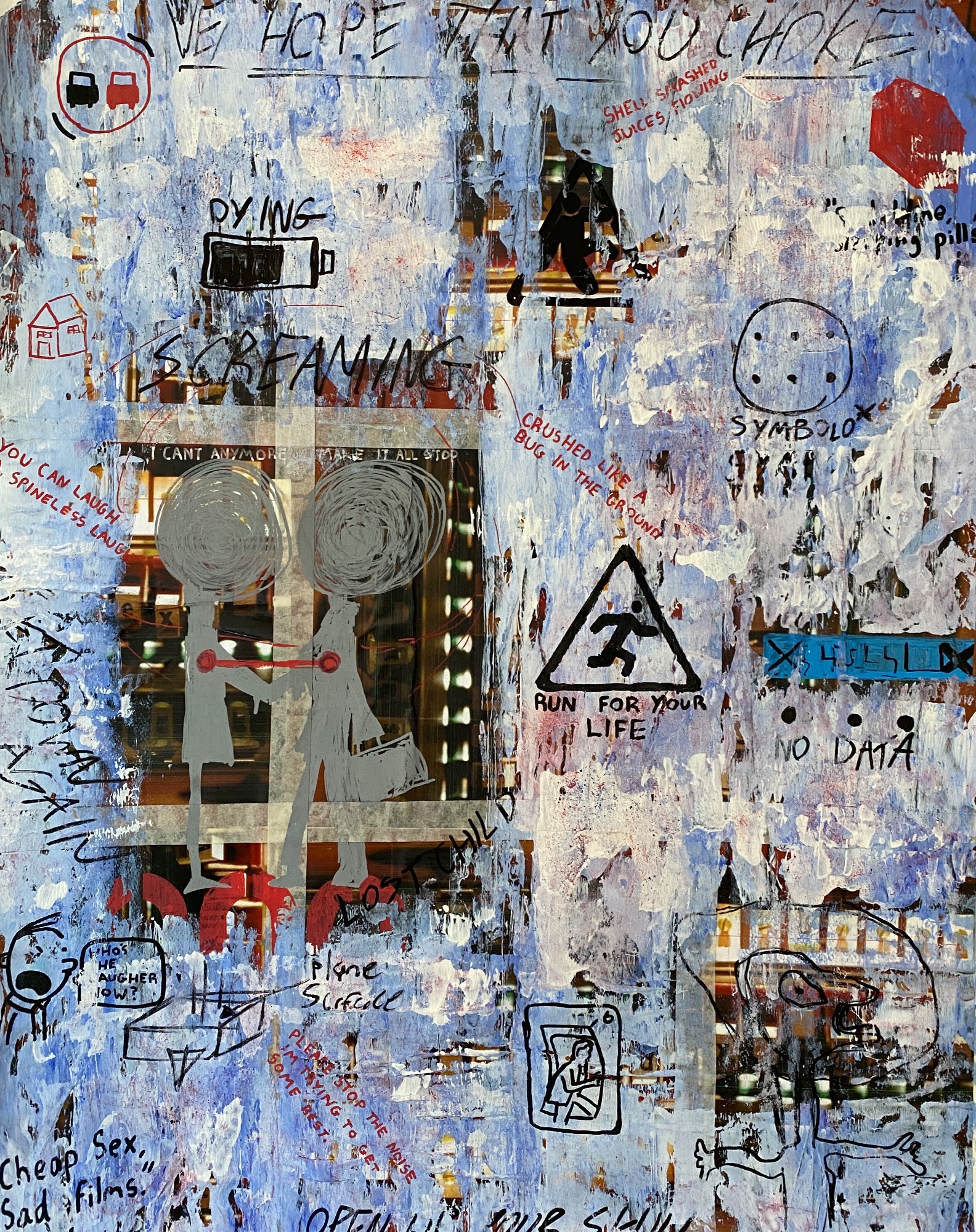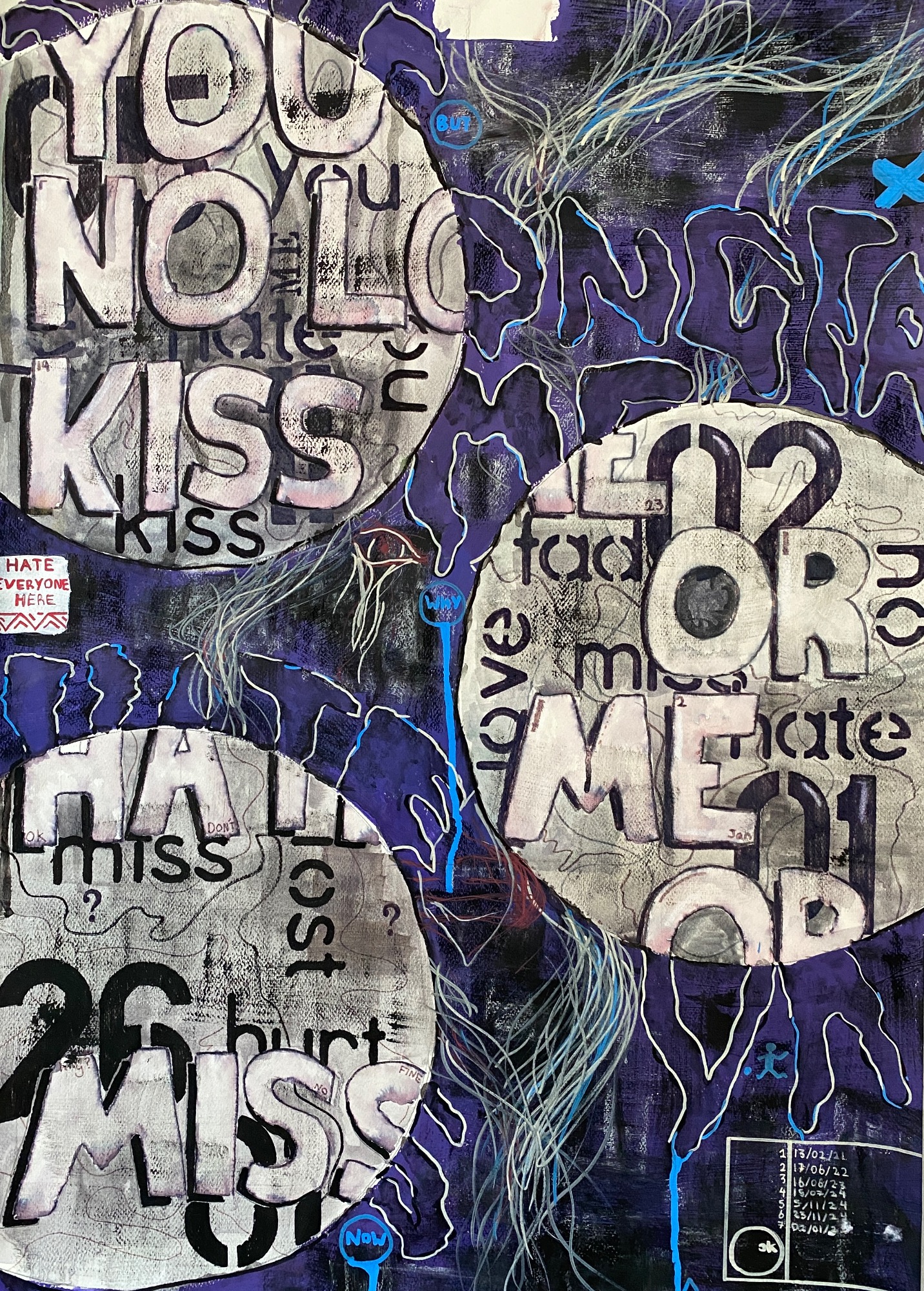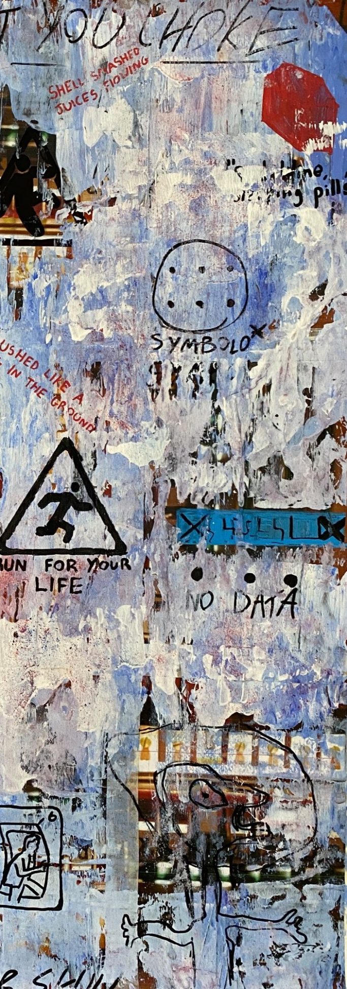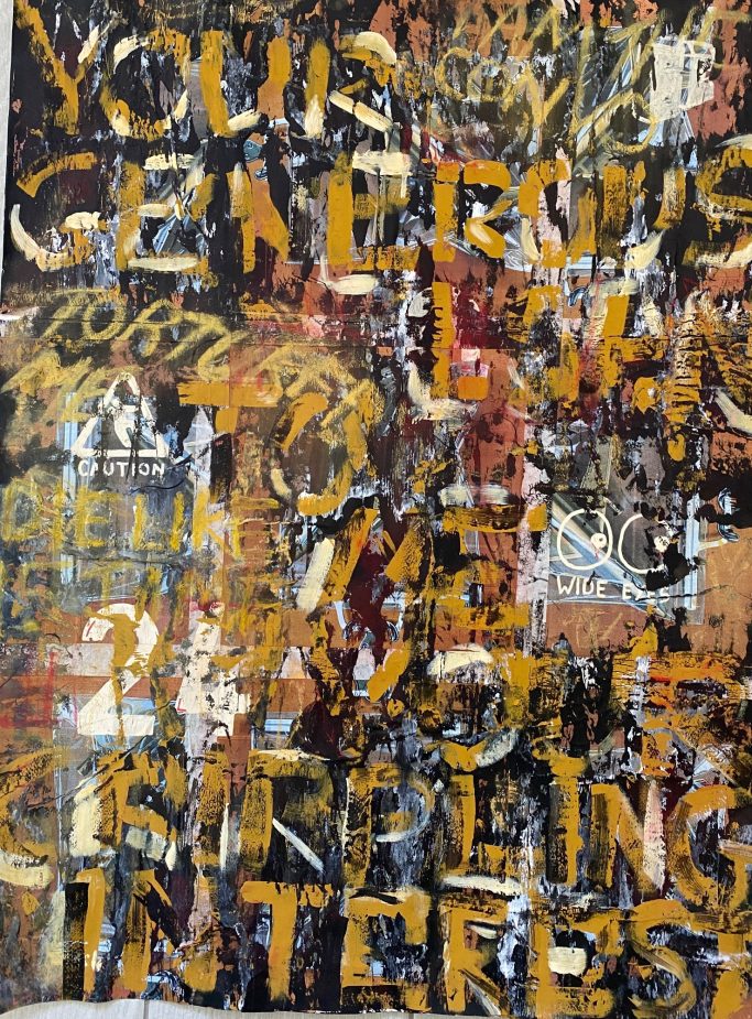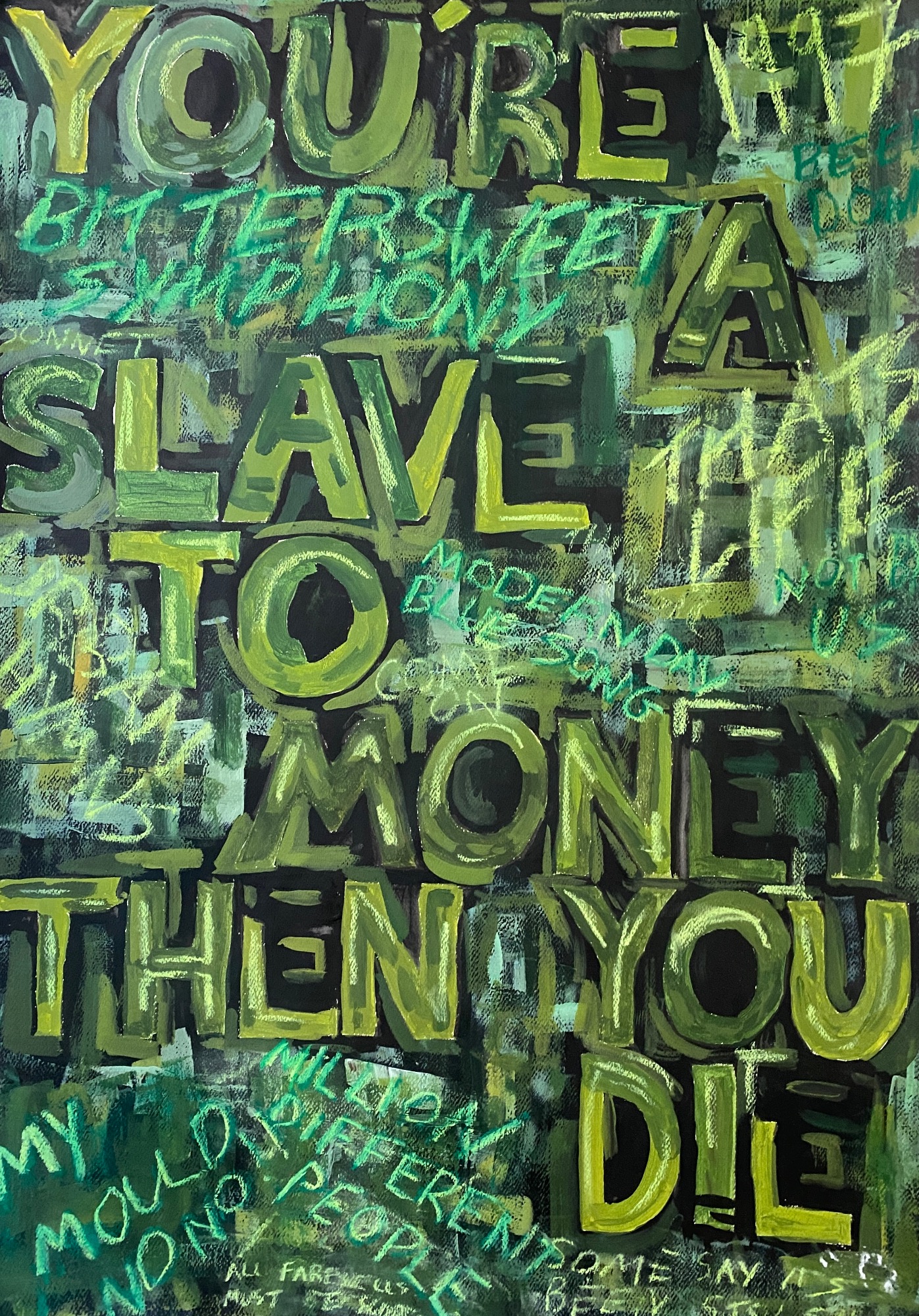 My work is intended to reflect my thoughts and my interests and how I view different subjects. I am primarily a painter who uses acrylics and oils across the majority of my work, however more recently in my 'The world as its (not) portrayed" series, I have begun using different mediums such as charcoal, chalk and posca pens within my work as I believe these can be effective in areas that paints cant quite reach. I have always been intrested in layering work over the top of eachother with the notion that art never truly is complete, as art is always changing, and always evolving. I continue to develop my work in different and new ways and continue to explore new avenues of creating art and expanding my creative vision.